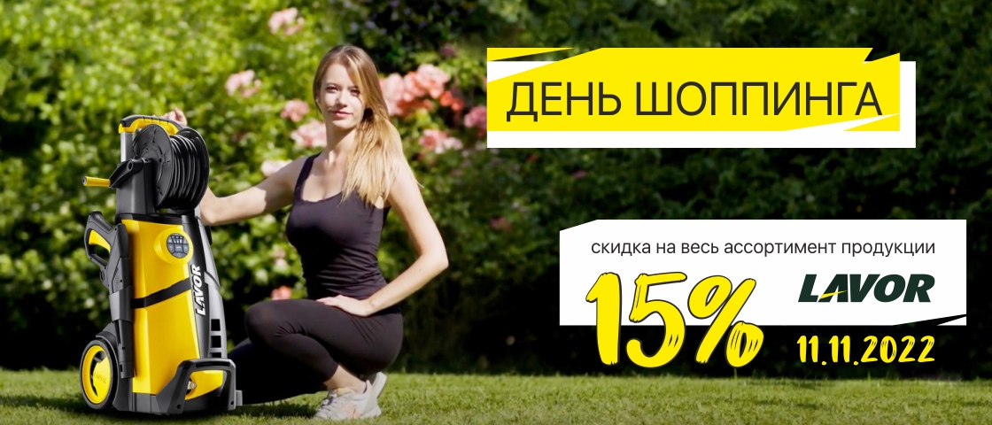 Только один день 11.11.2022 у Вас есть уникальная возможность купить оборудование и оснастку Lavor со скидкой 15%. Вы долго решали стоит ли покупать моющее оборудование Lavor? Наш ответ - настало время покупки Lavor по лучшей цене и только в нашем магазине, и только 1 день.